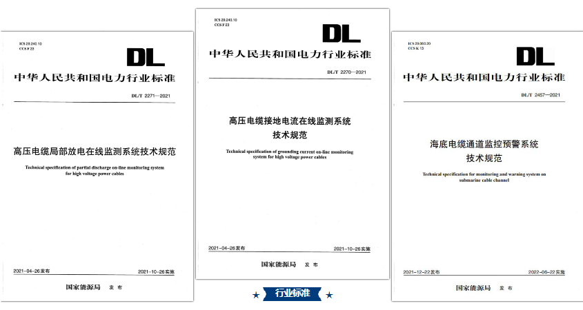 公司參與制定了多個(gè)電力行業(yè)標(biāo)準(zhǔn),為新技術(shù)的推廣普及做出積極貢獻(xiàn),包括國(guó)家能源局發(fā)布的《高壓電纜局部放電在線監(jiān)測(cè)系統(tǒng)技術(shù)規(guī)范》《高壓電纜接地電流在線監(jiān)測(cè)系統(tǒng)技術(shù)規(guī)范》《海底電纜通道監(jiān)控預(yù)警系統(tǒng)技術(shù)規(guī)范》等。